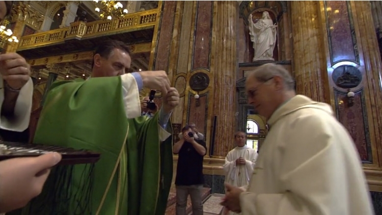 Presidió la Celebración Eucarística el Rector Mayor de los Salesianos, P. Don Ángel Fernández Artime, flanqueado por la Madre General de las Hijas de María Auxiliadora, Madre Yvonne Reungoat, y rodeado por numerosos concelebrantes, entre ellos Mons. Gaston Kashala Ruwezi, Obispo de Sakania-Kipushi, de la República Democrática del Congo. En la celebración también estuvieron presentes los Inspectores de las dos provincias de España, Cristóbal López y Juan Carlos Pérez.