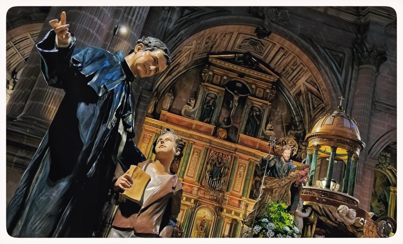 Una preciosa imagen de Don Bosco junto a Santo Domingo Savio se ubicó en el presbiterio para la celebración eucarística, que presidió el Obispo, Don Amadeo Rodríguez Magro, concelebrada por la comunidad salesiana de Jaén; el arcipreste de Santa María del Valle y el Delegado de la Pastoral Penitenciaria.