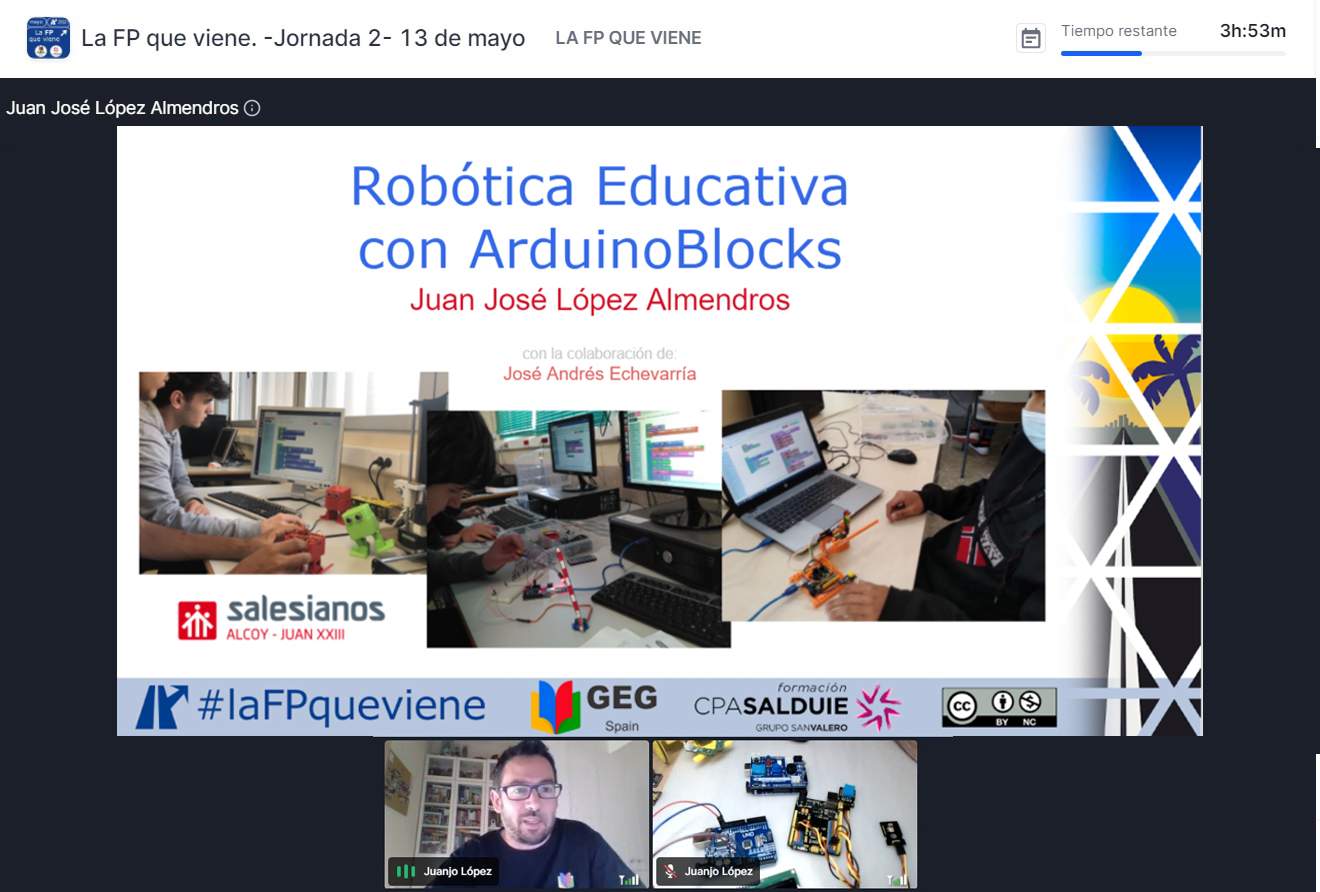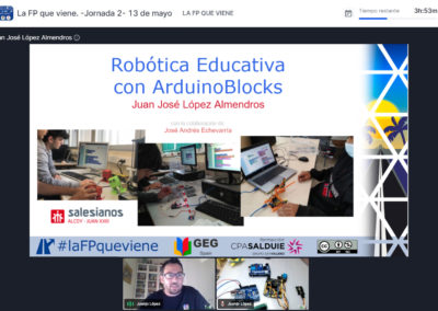 Son numerosos los eventos de índole pedagógica y tecnológica a los que Juan José López ha sido invitado a colaborar con intención de difundir las bondades de la plataforma. Juan José ha participado en formaciones para las consejerías de educación de diferentes comunidades autónomas, ha expuesto su proyecto en ferias de robótica a nivel nacional y, últimamente, presentaba la plataforma en el evento Google Educator Group “La FP que viene”, en el que la escuela salesiana se hacía presente a través de la realización de talleres de índole tecnológica.