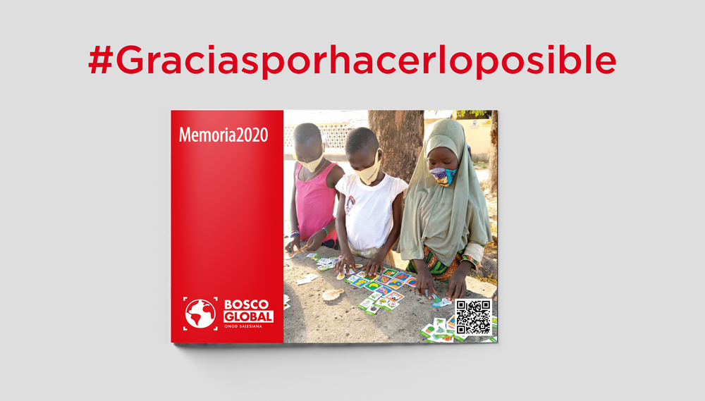 Bosco Global acaba de publicar su memoria de actividades del año 2020. Se trata, como en tantas otras entidades, de una resumen anual marcado por la pandemia, que obligó a cambiar la forma de trabajar: modificar y replantear los proyectos en curso, así como actividades, formas de interactuar y, sobre todo, a hacer de la creatividad la mejor herramienta para seguir dando respuesta a la misión.