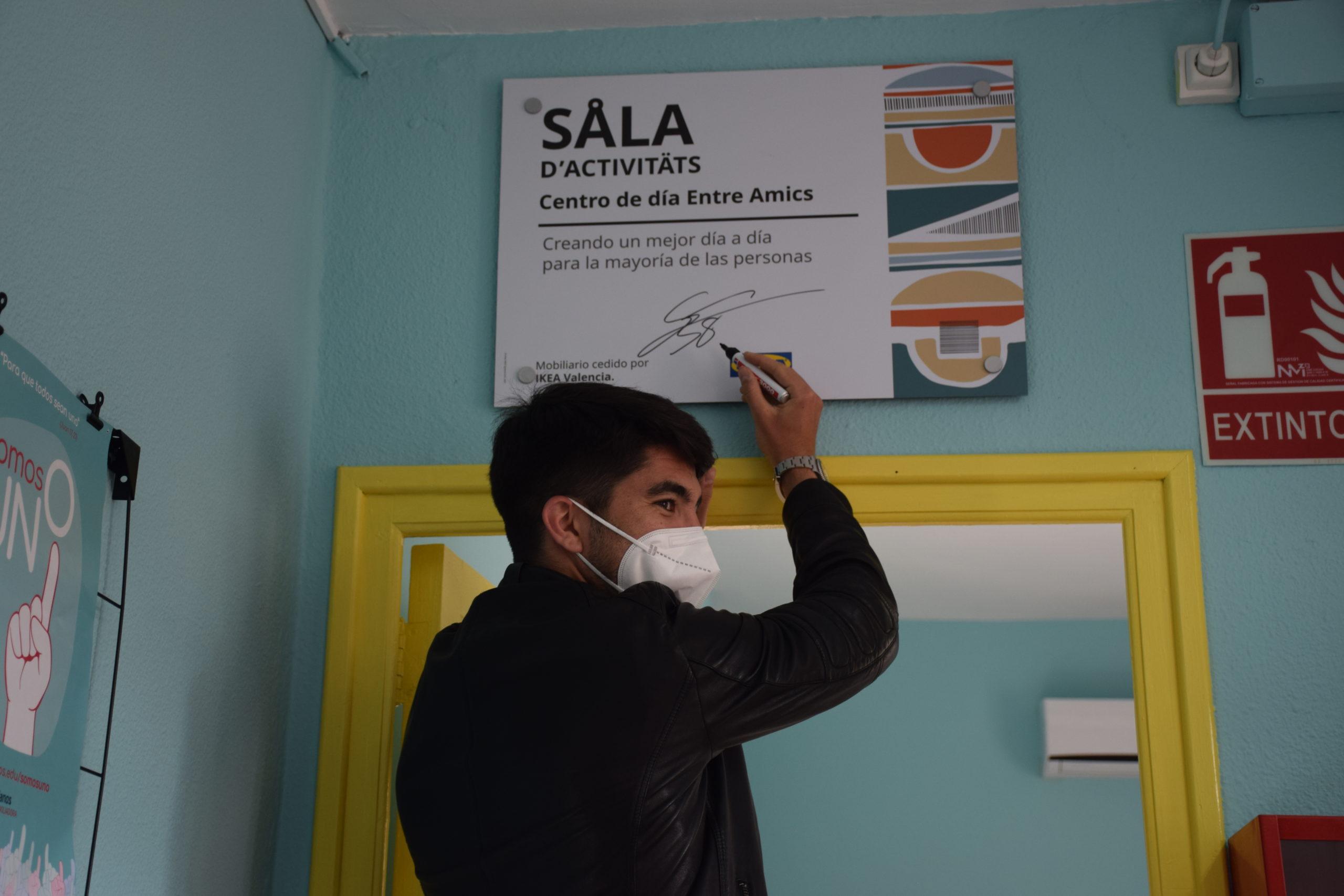 En la presentación, Carlos Soler ha inaugurado el aula protagonizando el representativo corte de cinta y posteriormente, ha estampado su autógrafo en una placa conmemorativa del proyecto social.
