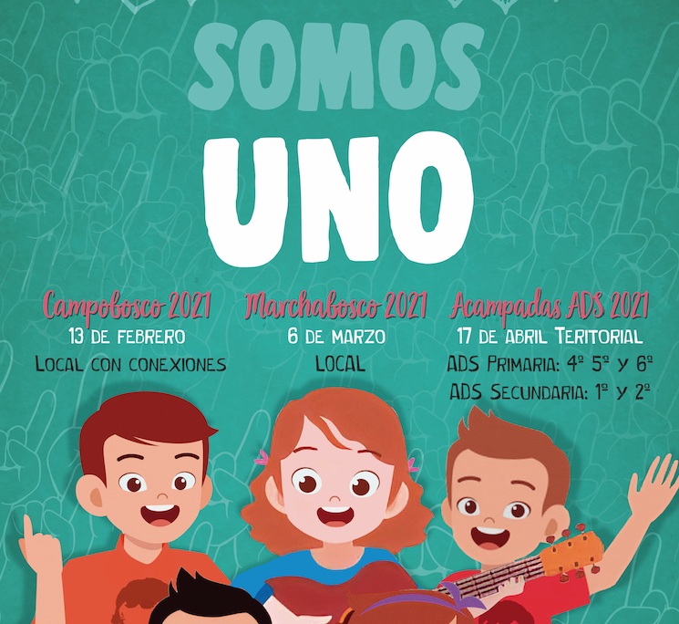 Este año los tres encuentros llevan por título ‘Somos Uno’ como colofón a dos años de campaña inspectorial que concluirán en mayo de 2021. El Campobosco tendrá lugar el 13 de febrero dirigido a mayores de 18 años, el Marchabosco será el 6 de marzo para chicos y chicas de 15 a 17 años, mientras que las Acampadas ADS tendrán lugar el 17 de abril dirigidas a jóvenes de 4º a 6º de Primaria y 1º a 2º de Secundaria.