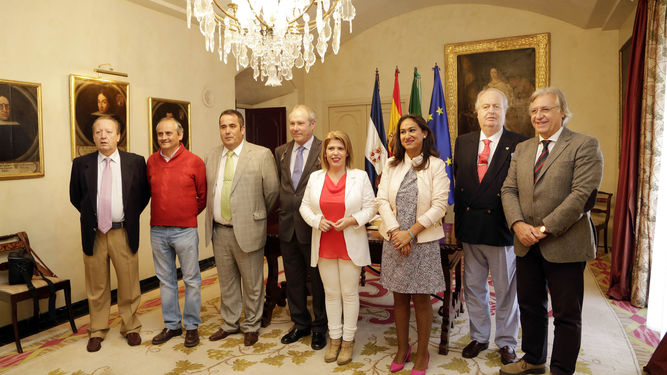 La alcaldesa, Mamen Sánchez, acompañada del teniente de alcaldesa de Urbanismo, Dinamización Cultural, Patrimonio y Seguridad, Francisco Camas, recibió el pasado 8 de noviembre en el salón noble del Ayuntamiento a las personas que encarnarán a los Reyes Magos el próximo 5 de enero, José Manuel Martín Álvarez-Cedrón, Juan Carlos Carrasco y Felipa Medrano, así como al Gran Visir, Marco Antonio Martínez. Al tradicional acto en Consistorio también acudieron el presidente y el presidente de honor de la Asociación de Reyes Magos de Jerez, Rafael Padilla y José Arcas, respectivamente, así como familiares y amigos de los Reyes Magos, algunos de los cuales harán las funciones de chambelán.
