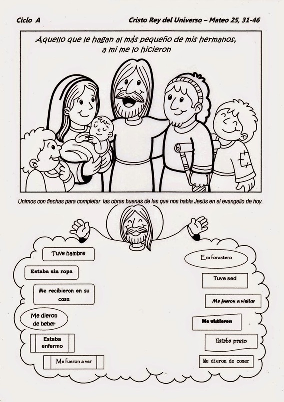 JESUS: Los justos le responderán: “Señor, cuando le vimos hambriento y le dimos comida, o que pasaba sed, y le dimos beber? ¿Cuándo le vimos forastero y le acogimos, o desnudo, y le vestisteis? Cuando os vimos enfermo o en la cárcel, y ¿vinimos a veros?