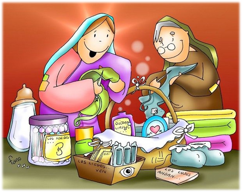 María, ¡como era de buena! Tres meses antes de que su prima Isabel diera a luz, se fue con ella para ayudarla y acompañarla, porque era mayor y vivía sola.