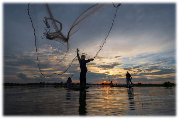En aquel tiempo, la gente se agolpaba en torno a Jesús para oír la palabra de Dios. Estando él de pie junto al lago de Genesaret, vio dos barcas que estaban en la orilla; los pescadores, que habían desembarcado, estaban lavando las redes. Subiendo a una de las barcas, que era la de Simón, le pidió que la apartara un poco de tierra. Desde la barca, sentado, enseñaba a la gente. Cuando acabó de hablar, dijo a Simón: «Rema mar adentro, y echad vuestras redes para la pesca». Respondió Simón y dijo: «Maestro, hemos estado bregando toda la noche y no hemos recogido nada; pero, tu palabra, echaré las redes». Y, puestos a la obra, hicieron una redada tan grande de peces que las redes comenzaban a reventarse. Entonces hicieron señas a los compañeros, que estaban en la otra barca para que vinieran a echarles una mano. Vinieron y llenaron las dos barcas, hasta el punto de que casi se hundían. Al ver esto, Simón Pedro se echó a los pies de Jesús diciendo: «Señor, apártate de mí, que soy un hombre pecador». Y es que el estupor se había apoderado de él y de los que estaban con él, por la redada de peces que habían recogido; y lo mismo les pasaba a Santiago y Juan, hijos de Zebedeo, que eran compañeros de Simón. Y Jesús dijo a Simón: «No temas; desde ahora serás pescador de hombres». Entonces sacaron las barcas a tierra y, dejándolo todo, lo siguieron.