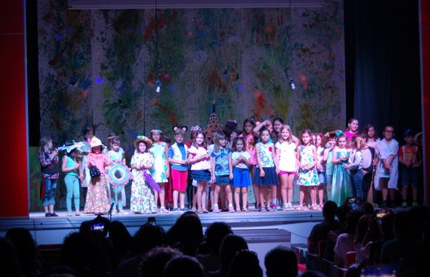 Un numeroso grupo de alumnos, esta vez desde primero a cuarto de Educación Primaria, en las tablas del escenario de San Rafael. Los alumnos interactuaron entre sí, ofreciendo a los padres y a los familiares una muestra de sus conocimientos en las tres modalidades: teatro, creatividad y música, creando un ambiente muy agradable y de máxima atención por parte del público.