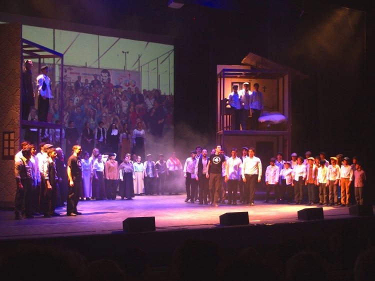 Tras largos meses de ensayo llegó la hora del estreno del musical “Gracias Don Bosco”. Nadie quiso perderse una cita a la que acudieron los Consejos Inspectoriales de Santiago el Mayor y María Auxiliadora y numerosas representaciones de las distintas presencias salesianas, así como distintos miembros de la Familia Salesiana de España. Sobre las tablas un espectáculo integrado por 165 personas que durante las cinco sesiones programadas dan vida a 18 escenas, con 20 canciones inéditas, y 100.000 vatios de luz y 20.000 de sonido, que convertían durante tres horas el espacio alcalareño en un reflejo de la Italia del siglo XIX.