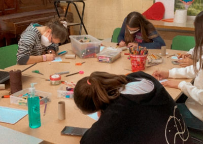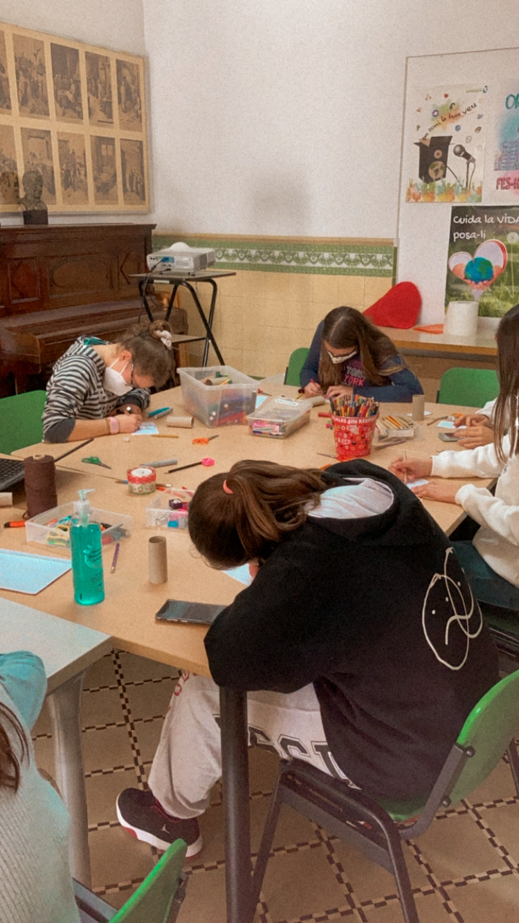 La primera semana, en la sesión habitual de cada casa, se trabajaron los hechos identitarios de cada uno creando una marioneta representativa de cada niño/a, como reflexión tenían que pensar todo aquello que les ata en su día en día y apuntarlo en los palos que dirigen a esta.