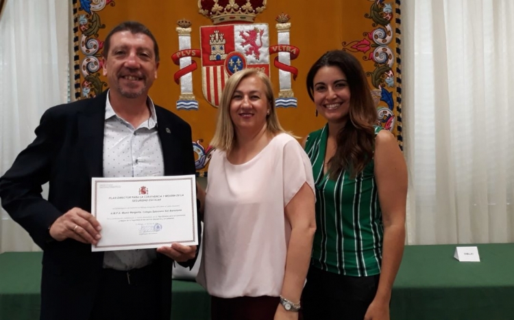 El área de Participación Ciudadana del Cuerpo Nacional de Policía de Málaga seleccionó en este curso a la Asociación de Madres y Padres de Alumnos «Mamá Margarita» de Salesianos Málaga para ser reconocida con un diploma por la excepcional implicación de los famllias en las charlas impartidas en el marco del Plan Director para la Convivencia y la mejora de la seguridad en los centros educativos y sus entornos. Al acto asistieron, en representación de la asociación, José Francisco Moreno, actual presidente, y Mª del Carmen Pino Vera, vocal; como representante del centro asistió Rocío Ruiz, subdirectora de Infantil y Primaria.