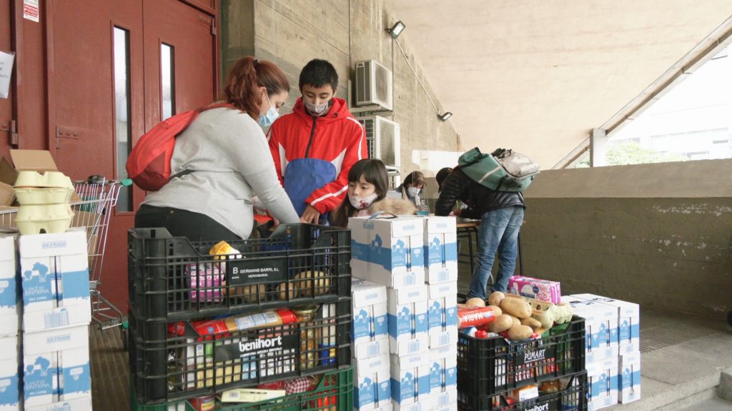 La cola es el retrato de la Barcelona golpeada por coronavirus: hay familias monoparentales, mujeres mayores, trabajadores de la cultura y, incluso, repartidores de comida a domicilio. «Antes venían más familias, ahora vienen muchas personas solas, sobre todo madres con hijos», explica Maite Villanueva, voluntaria. Carolina Escudero, beneficiaria de la iglesia, relata a betevé que és la primera vez que necesita ayuda para llenar la nevera.