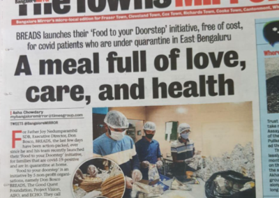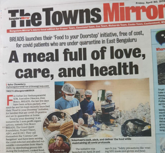 Incluso en la Inspectoría de Bangalore la situación requiere el máximo esfuerzo: «BREADS», la Oficina Inspectorial de Planificación y Desarrollo, ya ha tomado medidas a todos los niveles: ha comenzado a entregar alimentos a domicilio a los enfermos en cuarentena; suministra mascarillas, desinfectantes y equipo de protección personal al salesiano Anil D’Sa, responsable de los Grupos y Movimientos Juveniles, y a todos los jóvenes voluntarios que junto a él, se comprometen a atender a los necesitados y a dar ayuda a las enfermeras y médicos en los hospitales de la ciudad; también está apoyando económicamente a muchas familias que no pueden hacer frente a los gastos médicos u hospitalarios, o que han perdido al jefe de la familia debido a la pandemia; Además, también está planificando en colaboración con el municipio, un centro para pacientes con Covid-19 en los barrios marginales de Lingarajapuram.