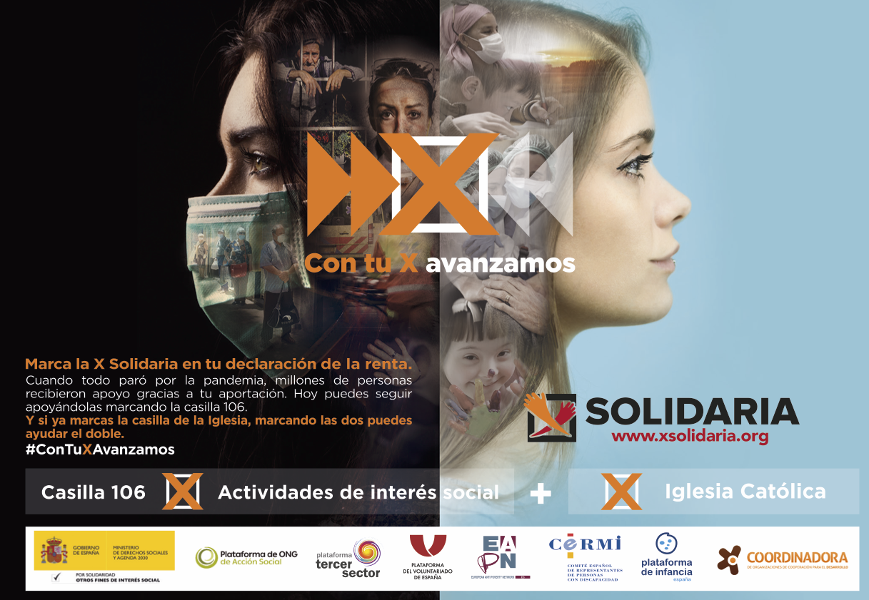 En plena crisis sanitaria y social provocada por el coronavirus las ONG han apelado, una vez más, a la solidaridad ciudadana para que todo lo que ya vienen ofreciendo en cuanto a atención efectiva y afectiva pueda seguir funcionando. La persona contribuyente puede seguir haciendo posible que millones de personas reciban la atención que necesitan marcando la «X Solidaria» y la X de la Iglesia Católica en la declaración de la renta.