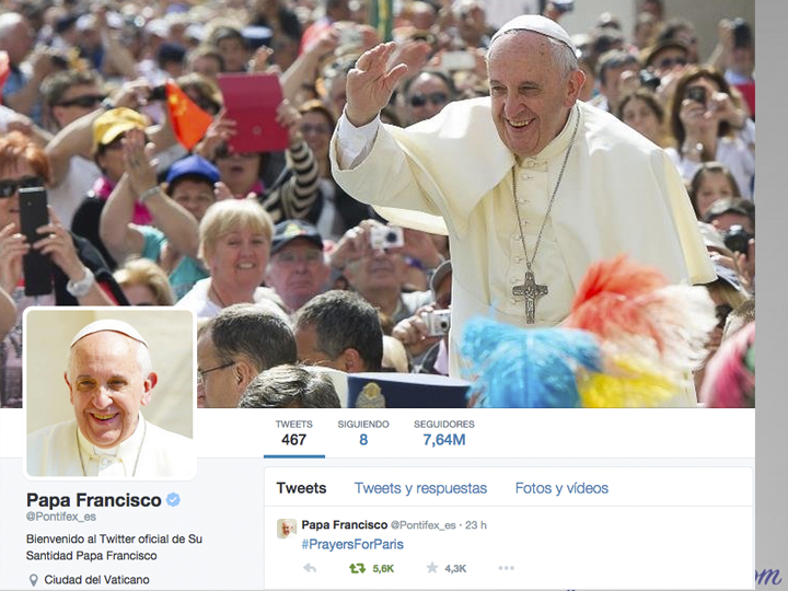 PrayersForParis propuesto en el día de ayer desde la cuenta oficial en Twitter de Su Santidad el Papa Francisco.