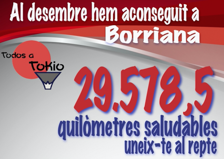 El Servicio Municipal de Deportes de Burriana y algunos centros educativos del municipio entre los que destaca el Colegio Salesianos, han conseguido reunir en el mes de diciembre hasta un total de 29.578,5 km saludables en el reto ‘Todos a Tokio’ ¡Suma kilómetros de salud! puesto en marcha por la ONG Deporte para la Educación y la Salud (DES).