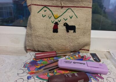 Además, las mujeres han participado en la ferias artesanas en la población de Guaranda y han mantenido reuniones con otras asociaciones de productoras de artesanías y comercio justo para conocer canales de distribución y técnicas de comercialización.
