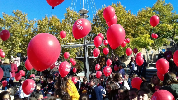 Después de la proyección del documental ‘Alto el fuego’, más de 500 alumnos de los Salesianos de Linares, toda Primaria y toda Secundaria, acompañados de muchos profesores y padres, participaron en una suelta de globos en la plaza del Ayuntamiento para recordar a los menores cuyos derechos más elementales son vulnerados. La lectura de un manifiesto por el Día Universal del Niño, una coreografía y la suelta de globos de Misiones Salesianas se convirtieron en un acto festivo lleno de significado para los menores y la comunidad educativa salesiana.