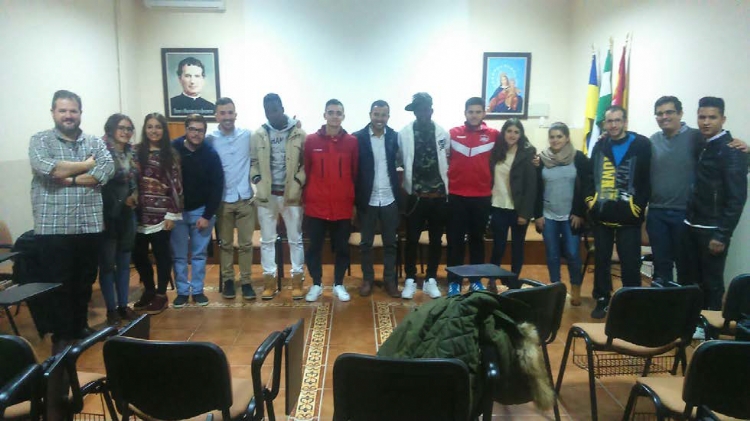 Los jóvenes del grupo de Cristo Vive, Confirmación de Formación Profesional y de los grupos de Fe "Sal Terrae" de Salesianos Palma del Río tuvieron la oportunidad de recibir el pasado viernes a unos invitados muy especiales: De la mano de Antonio Alférez, educador social de Proyecto Don Bosco, vinieron a la casa cordobesa cuatro muchachos inmigrantes.