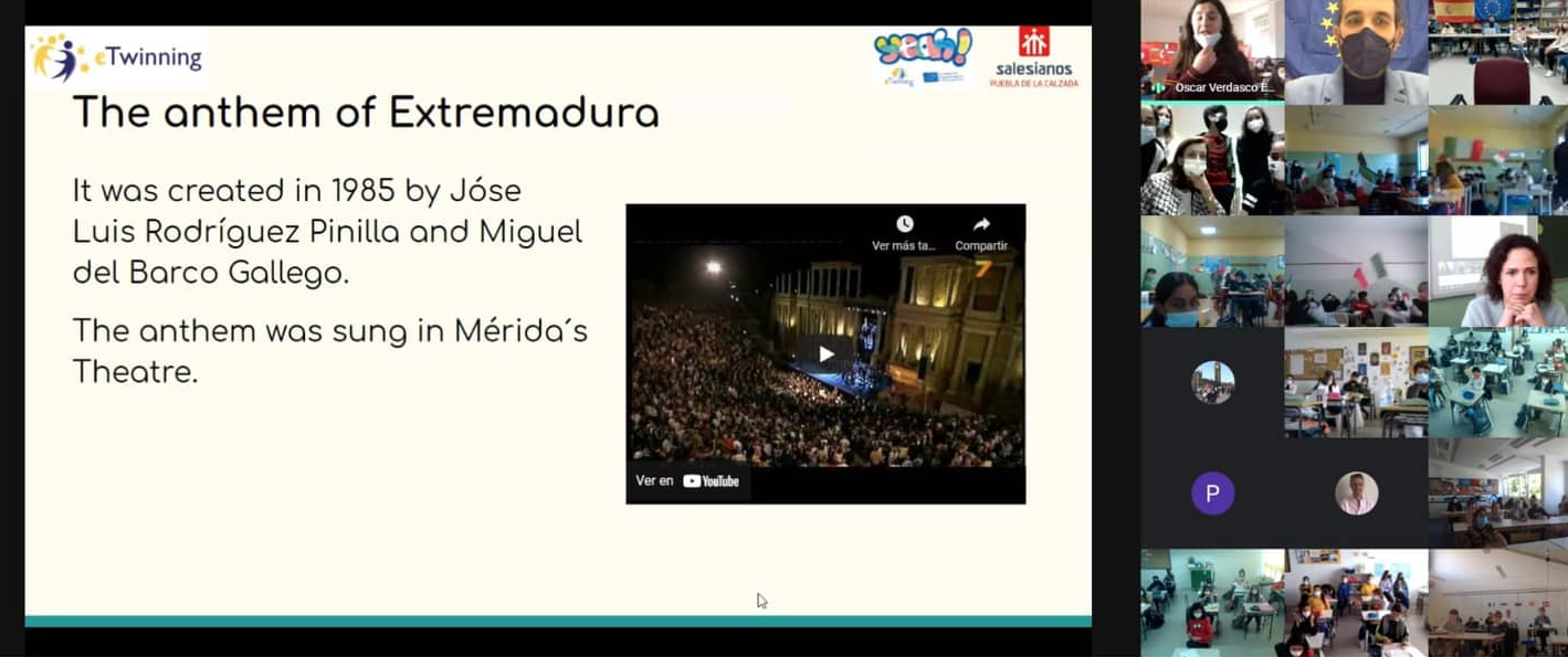 En la recta final del curso, mediante videoconferencia, los participantes salesianos han expuesto al resto de países la simbología de Extremadura (bandera, escudo e himno), además de hablar de productos típicos de la gastronomía. «Una maravillosa experiencia la de participar en este proyecto europeo y el primer paso para hacer una inmersión en este mundo de la colaboración internacional. Seguiremos participando.», compartían desde el centro como conclusión.