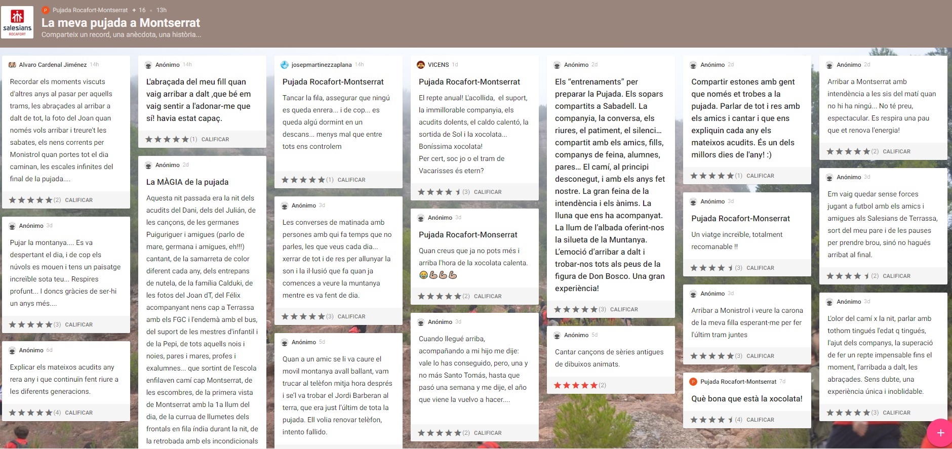 Se ha organizado un espacio virtual para mantener vivo el espíritu de la subida y por ello desde la comunidad educativa se pide que se compartan recuerdos, anécdotas, reflexiones, etc, en esta «pizarra virtual» titulada «Mi subida a Montserrat» .