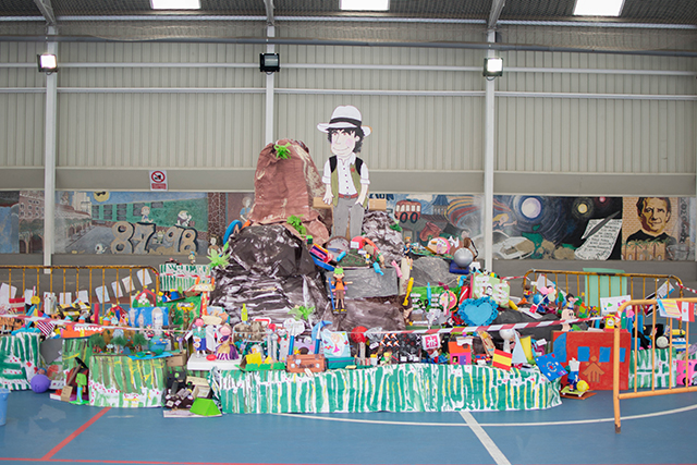 Una vez finalizados los postres, se inició la preparación de la falla realizada por los menores a lo largo de dos semanas. La temática central era el lema de la campaña “La aventura eres tú”, la cual motivó a que cada uno de los chicos y chicas se representaran escalado la gran montaña que era la pieza central.
