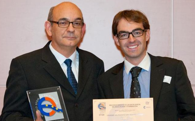 Los encargados de recoger el premio fueron el director del colegio, Mario Pardos y el coordinador de calidad, Jordi Terol. Si bien cabe decir que el grueso del trabajo se ha realizado durante el curso anterior, ya que se tuvo que preparar una exhaustiva memoria para contar lo que hacemos a nivel de calidad en el centro (a partir de un listado de más de 100 indicadores), cómo lo hacemos y qué medidas se toman para mejorar todos los procesos internos a nivel de centro educativo, con lo que también cabe agradecer al equipo directivo anterior su participación en este proyecto.