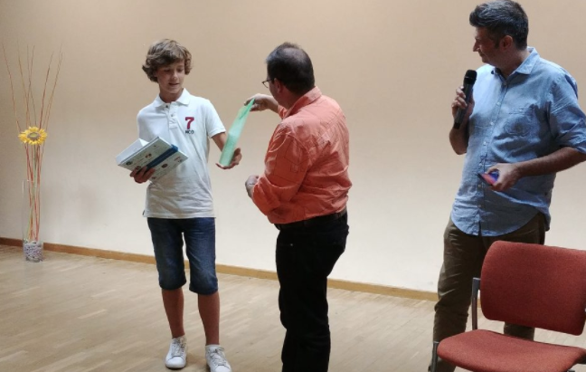 A la entrega de premios acudieron todos sus compañeros de segundo curso de Secundaria de Salesianos San Antonio Abad de Valencia y varios profesores, así como su familia.