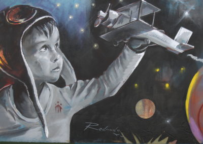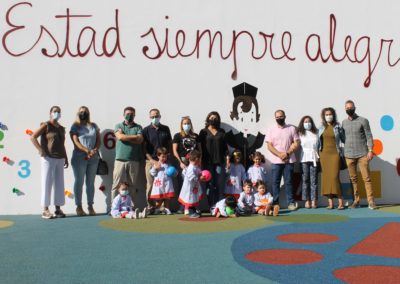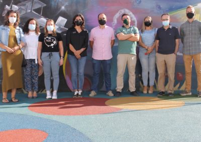 “Hay que destacar la fantástica obra del antiguo alumno, Álvaro Redondo.Este artista palmerino supo plasmar en las paredes del patio un mensaje de acompañamiento, de esperanza e ilusión, y de un universo de posibilidades que se abre por delante al alumnado que respira y sueña en los patios salesianos de este bonito pueblo onubense”, compartían.