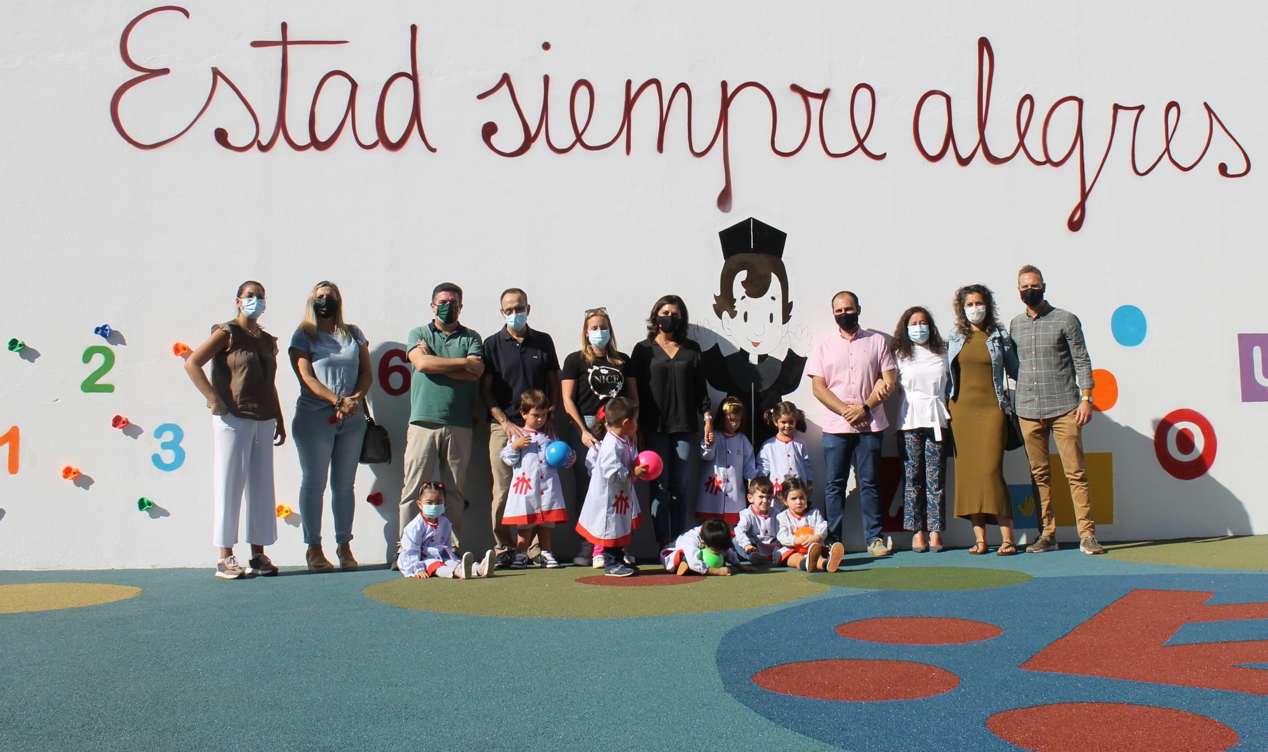 La ilusión y la alegría iluminan la cara de los alumnos palmerinos cada vez que les toca jugar en su nuevo patio. Un patio hecho a su medida: con suelo de caucho, ambientación de las paredes, atracciones y un divertido rocódromo.