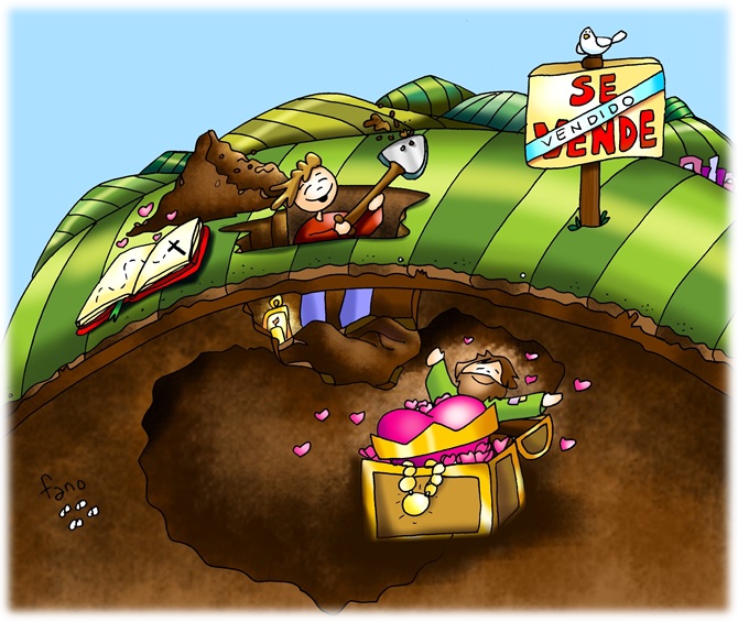 En aquel tiempo, dijo Jesús a la gente: «El reino de los cielos se parece a un tesoro escondido en el campo: el que lo encuentra, lo vuelve a esconder y, lleno de alegría, va a vender todo lo que tiene y compra el campo. El reino de los cielos se parece también a un comerciante de perlas finas, que al encontrar una de gran valor se va a vender todo lo que tiene y la compra. El reino de los cielos se parece también a la red que echan en el mar y recoge toda clase de peces: cuando está llena, la arrastran a la orilla, se sientan y reúnen los buenos en cestos y los malos los tiran. Lo mismo sucederá al final de los tiempos: saldrán los ángeles, separarán a los malos de los buenos y los echarán al horno de fuego. Allí será el llanto y el rechinar de dientes. ¿Habéis entendido todo esto?». Ellos le responden: «Sí». Él les dijo: «Pues bien, un escriba que se ha hecho discípulo del reino de los cielos es como un padre de familia que va sacando de su tesoro lo nuevo y lo antiguo».