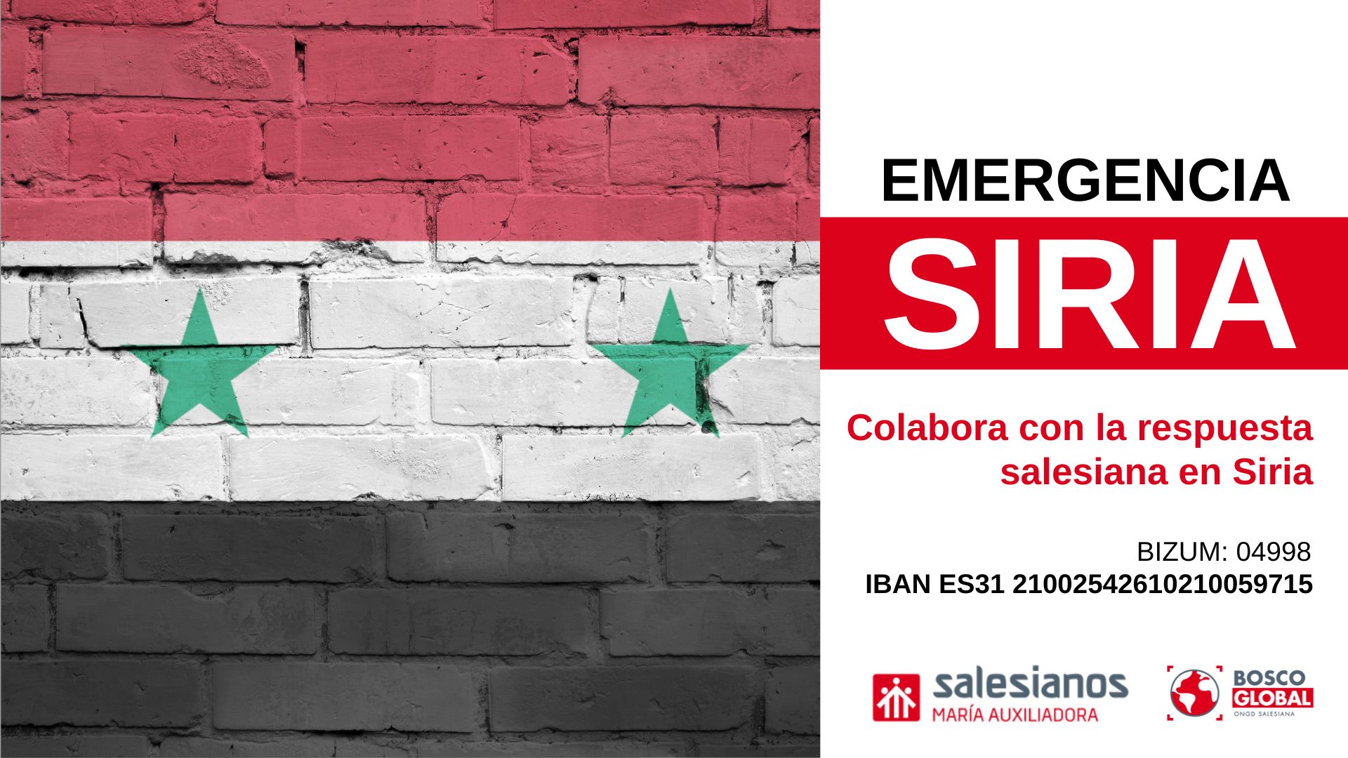 - Titular cuenta: Inspectoría María Auxiliadora | CONCEPTO: Donación SIRIA (Importante que se ponga con claridad el concepto)
