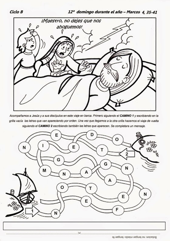 NARRADOR: El viento cesó y vino una gran calma. Él les dijo: