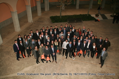 El director de la EUSS, el Dr. Andreu Moreno, condujo el acto académico, y dio la palabra al nuevo responsable de Alumni, el profesor Joan Yebras, que explicó brevemente la tarea encomendada y los objetivos propuestos. El padrino de la 19ª promoción fue el profesor Agustí Fontquerni que era Alumni de la 1ª promoción de la EUSS, como ingeniero técnico industrial en electrónica industrial.