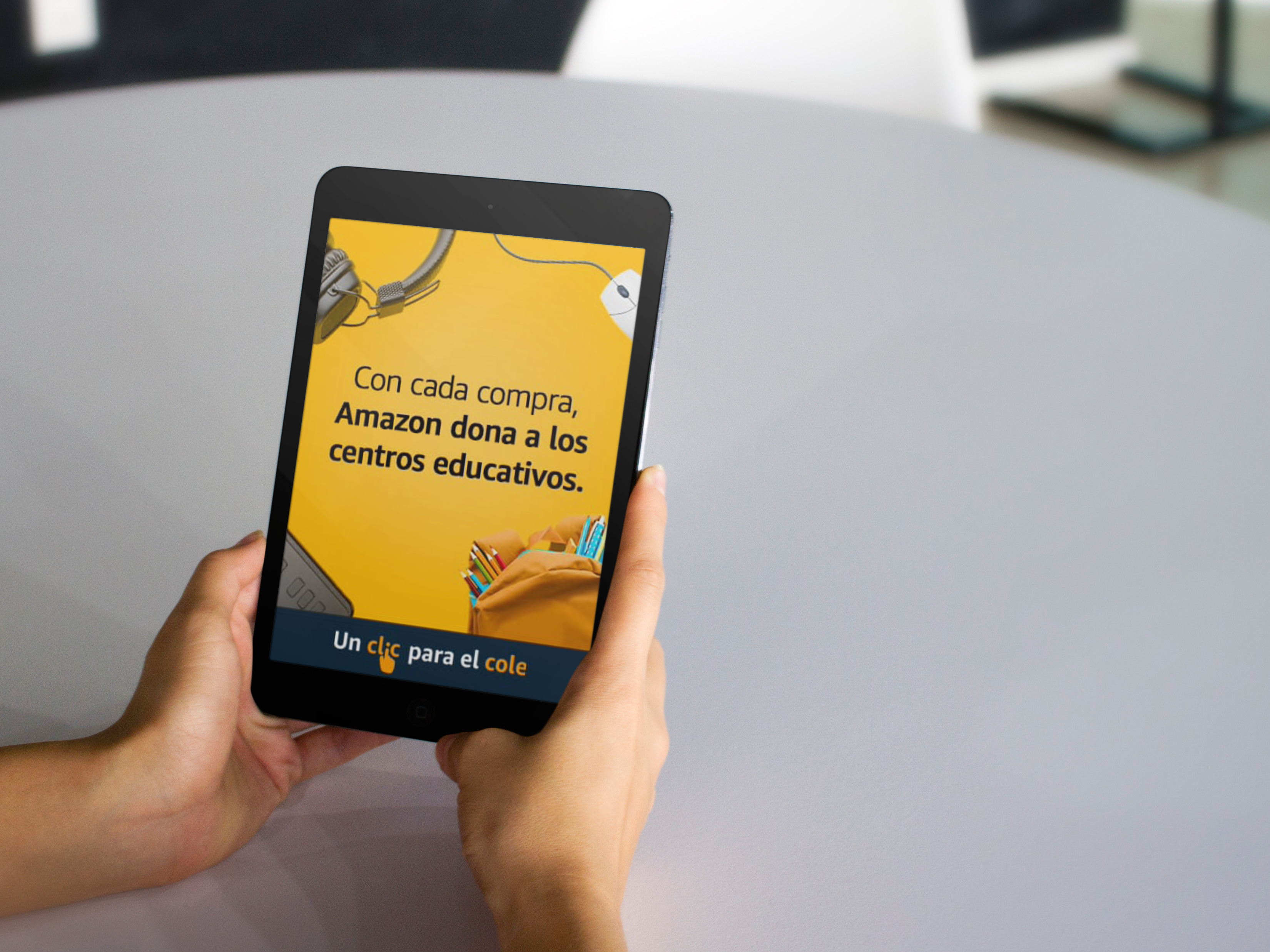 Un clic para el cole es una iniciativa de Amazon.es dirigida a los centros educativos que imparten educación infantil (2° ciclo), primaria, secundaria, bachillerato y/o formación profesional del territorio español. Desde el pasado 6 de septiembre hasta el 6 de febrero de 2022, Amazon donará a los centros educativos un porcentaje de todas las compras realizadas por aquellos clientes que se hayan unido a la iniciativa. El centro educativo podrá usar el crédito virtual acumulado para seleccionar y recibir de manera gratuita equipos informáticos, material educativo y todos aquellos productos que necesite eligiendo entre más de 1.000 productos.