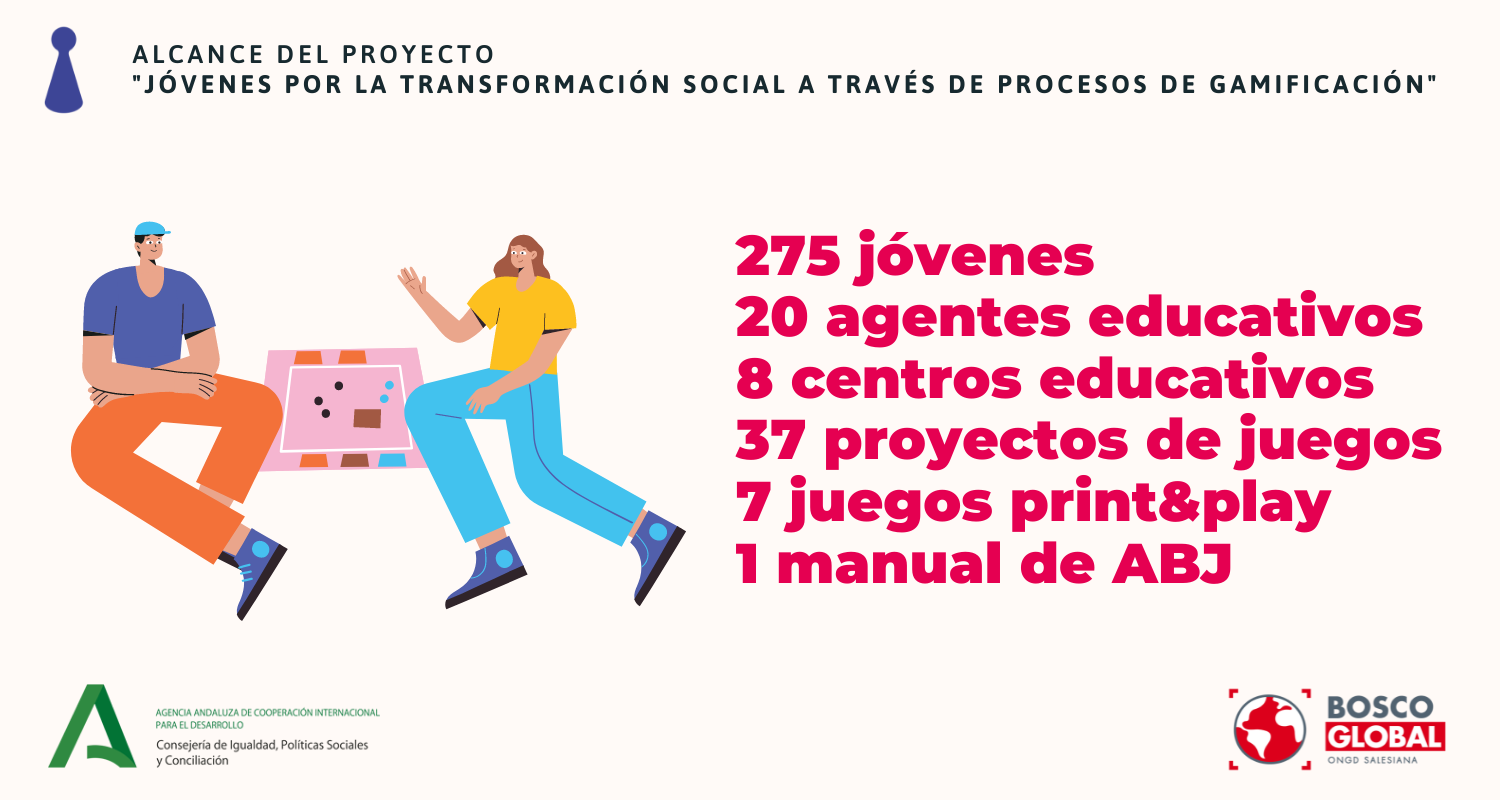 El pasado 31 de octubre finalizó el proyecto “Jóvenes por la transformación social a través de procesos de gamificación”, desarrollado por Bosco Global con la cofinanciación de la Agencia Andaluza de Cooperación Internacional para el Desarrollo de la Junta de Andalucía (AACID).