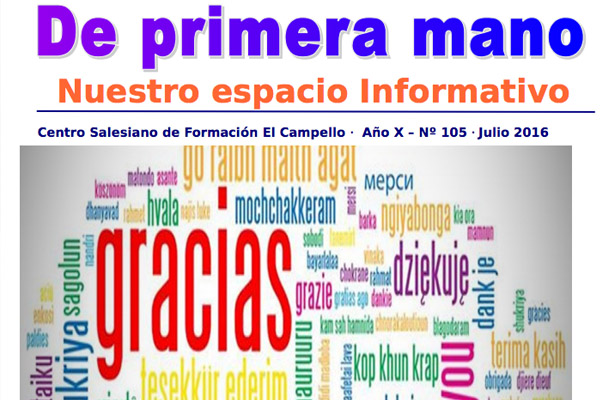 “Con este N.º 105, llegamos al final de este “espacio informativo” que nos ha unido desde el 2007 hasta este ya avanzado curso 2015-2016, cumplido un periplo largo, hermoso, interesante, salesianamente lleno de vida, de interés para muchos y de sueños compartidos” con estas palabras se despedía Antonio Gil, redactor jefe y director de la casa salesiana de El Campello y del Centro de Formación hasta este curso y desde septiembre a la cabeza de la Casa Salesiana de Málaga.
