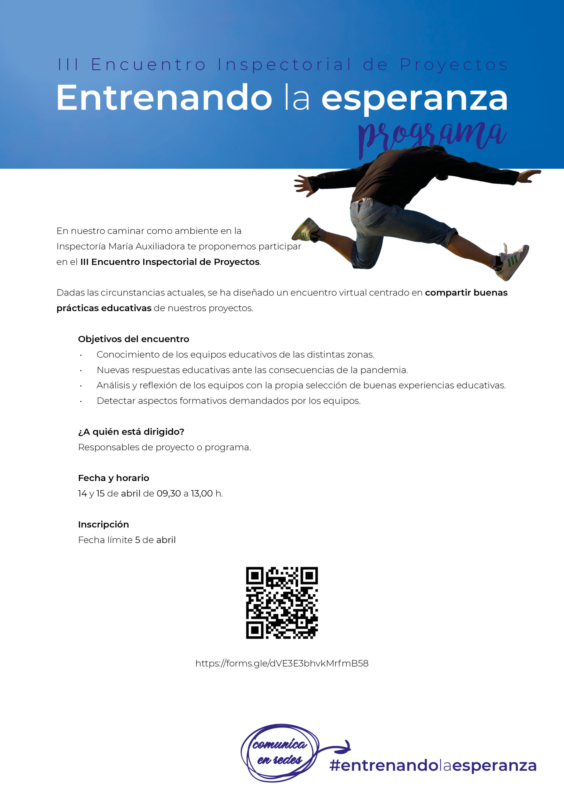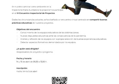 Los próximos días 14 y 15 de abril se celebrará el III Encuentro Inspectorial de proyectos de las Plataformas Sociales Salesianas de la Inspectoría María Auxiliadora. Será el primer encuentro bajo el paraguas de Don Bosco Salesianos Social.