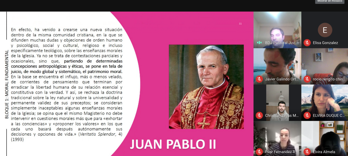 Ante las restricciones sanitarias aplicadas a la nueva normativa el equipo de profesores, muy a su pesar, tuvo que aparcar temporalmente las aulas presenciales que tanta vida, cercanía y humanismo transmitían para pasar a la formación y el acompañamiento desde las aulas virtuales. No obstante han sabido adaptarse e incorporar todos aquellos recursos tecnológicos, pedagógicos y didácticos que han acercado los conocimientos teológicos y pedagógicos a las aulas fomentando y priorizando el diálogo, la reflexión compartida y el crecimiento personal y profesional de los alumnos. «Todos deseamos que esta situación revierta cuanto antes y podamos volver a la enseñanza tradicional pero incorporando todo lo que hemos aprendido en esta etapa», comparten sobre la experiencia vivida en estos primeros meses.