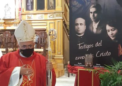 El obispo de Córdoba, monseñor Demetrio Fernández, presidió una celebración en la casa salesiana en la que propuso con fuerza y profundidad la santidad valiente y sencilla de los beatos mártires de Pozoblanco; y especialmente propuso al buen grupo de jóvenes que rezaron ante él, y que animaron la celebración con sus cantos, sus moniciones y detalles, que atendieran al amor hecho fe y vida de Bartolomé Blanco. Les propuso vivir con pasión y decisión, como él, con su vida en plenitud, lejos de posicionamientos que los despersonalizan, firmemente arraigados en la fe, como Bartolomé, como Teresa, como don Antonio.
