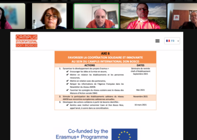 A las fortalezas destacadas en la primera ‘Peer review’ se sumaron nuevas fortalezas detectadas tras el periodo de trabajo entre ambas revisiones. Entre otras, las nuevas fortalezas dialogadas giraron sobre el proceso de mejora continua y los objetivos y metas a corto y largo plazo fijados en el campo de la internacionalización. También se subrayó como positivo el estudio sobre la posibilidad de solicitar la acreditación Erasmus. El objetivo de esta revisión por pares no es otro que el de mejorar el rendimiento y la planificación relativa a la internacionalización de las instituciones participantes en el proyecto. Esta revisión se une a la realizada entre España-Francia durante los días 12 y 13 de enero donde la Inspectoría Salesiana María Auxiliadora (SMX) evaluó el trabajo francés en relación a las actividades de internacionalización que llevan a cabo desde la organización.