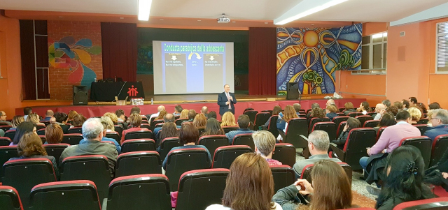 Tras la bienvenida de Paco Vázquez, director de la Obra y los saludos de Juan Seguí, representante del AMPA del colegio Salesianos El Campello, y Joaquín Pérez, presidente de FAPASI, Javier Torregrosa como Coordinador de Escuelas, presentó al ponente Antonio Ríos.