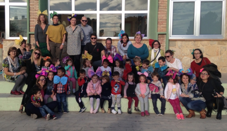 Nuestros niños vinieron muy guapos para la ocasión. Ellas, con unos bonitos lazos de papel de seda y los mofletes y labios pintados, y ellos, con sus elegantes pajaritas y el bigote. La celebración tuvo lugar en el patio, donde acompañados de sus familiares, bailaron danzas populares como el corro chirimbolo o el corro Manolo.