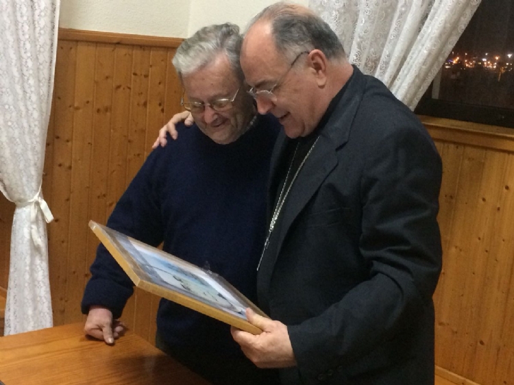 Con motivo de sus Bodas de Oro sacerdotales, la comunidad salesiana de Las Palmas obsequió a don Francisco Cases Andreu, obispo de Canarias, con un dibujo a plumilla, obra del salesiano Paco Fuentes.