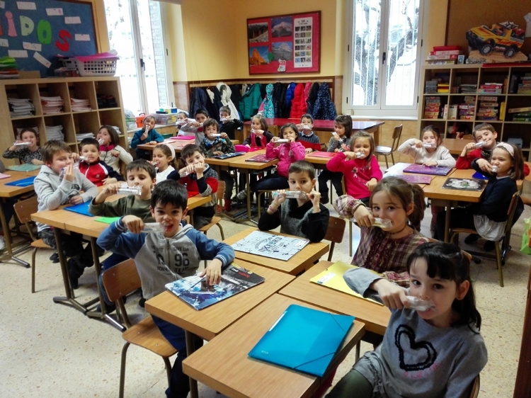 La semana pasada Salesianos Huesca recibió la visita de la doctora María José Saso, que vino a contar a los más pequeños cómo deben lavarse y cuidarse los dientes. Les explicó cómo utilizar el cepillo e incluso les enseñó cómo se conectan los dientes a los nervios. Incluso les regaló cepillos y tubos de pasta para que se limpien todos los días sin excusa.