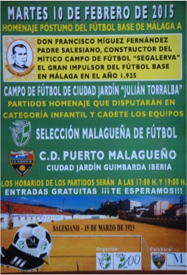 La Federación Andaluza y la Federación Malagueña de fútbol organizan un homenaje póstumo a D. Francisco Míguez, 79 años después de su fallecimiento, para reconocer de esta forma la importancia de este salesiano en el desarrollo futbolístico en la ciudad de Málaga.