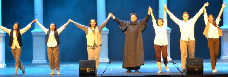 A beneficio de Solidaridad Don Bosco y con motivo del bicentenario del nacimiento de San Juan Bosco, el teatro Villamarta de Jerez se vistió de gala el pasado sábado 25 de abril para acoger el espectáculo “Don Bosco, El Musical”, escenificado por la compañía teatral de la Casa salesiana de Mérida, presencia dirigida por el salesiano jerezano Marco Antonio Romero Temblador, muy querido en la Capital del Vino. La amena función, de casi tres horas de duración, tuvo una muy buena entrada y estupenda acogida por parte del público en general y de la familia salesiana, en particular. Consiguió trasladar al público a los primeros años de la misión de san Juan Bosco. Formidable trabajo de un equipo bien compenetrado, integrado por setenta personas, que dieron una auténtica lección de buen hacer y saber estar sobre las tablas.