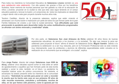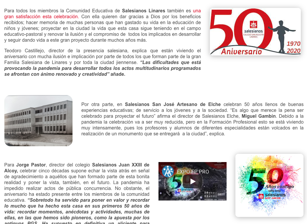 El número 67 de la publicación inspectorial presenta cómo viven las presencias salesianas sus efémerides. Casas como Granada, Linares o San José Artesano de Elche comparten sus preparativos en las páginas de SMX. También otras casas salesianas que continúan con las celebraciones que comenzaron en 2019 y debido a la pandemia no pudieron llevar a cabo. Es el caso de Jaén, Juan XXIII de Alcoy, San Juan Bosco de Valencia o el Colegio Mayor Universitario San Juan Bosco de Sevilla. Además en la sección En Confianza, Luis Bayona, antiguo alumno salesiano habla de lo que supone para él formar parte de la historia de una casa salesiana.
