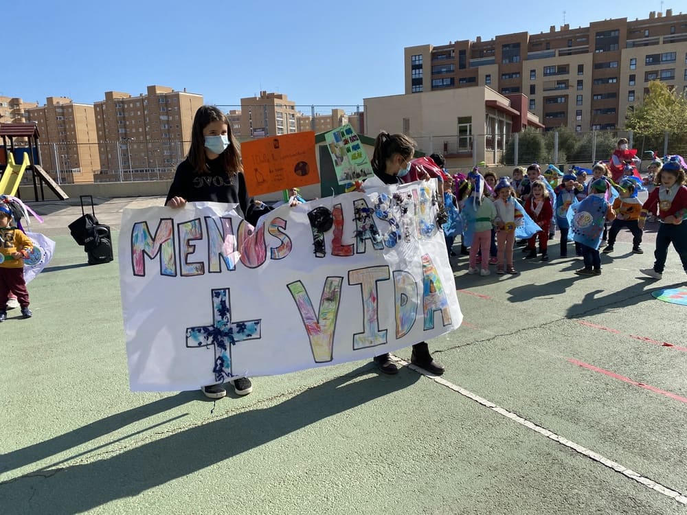Como consecuencia de los aprendizajes y a modo de difusión, el martes 16 de marzo se hizo una manifestación dentro del colegio para dar difusión al mensaje «menos plástico más vida». “Cada una de las clases de infantil inventó una frase eslogan para posicionarse y, un grupo de alumnas de 1º de Secundaria leyeron un manifiesto más extenso donde se animaba a todos a no utilizar plásticos y, si los utilizaba, a reciclarlos correctamente” explica la profesora Beatriz Sánchez.