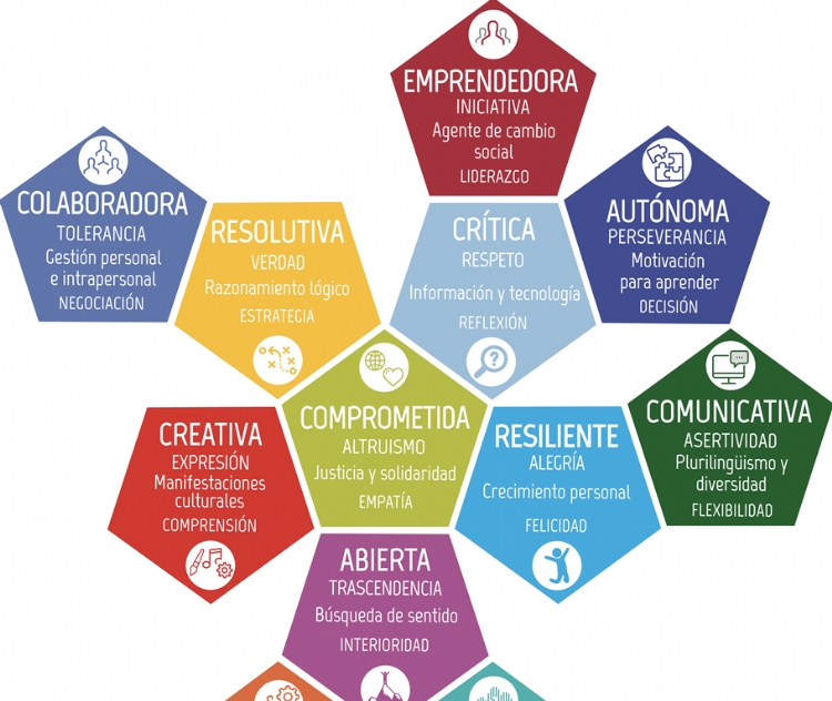 El perfil competencial que se impulsa desde escuelas salesianas trabaja a partir de la acogida incondicional y el acompañamiento personalizado del alumnado y se concreta en doce competencias (dodecaedro): personas Emprendedoras, Responsables, Autónomas, Colaboradoras, creativas, Críticas, Resolutivas, Abiertas, Resilientes, Comunicativas, ingeniosas y Comprometidas.