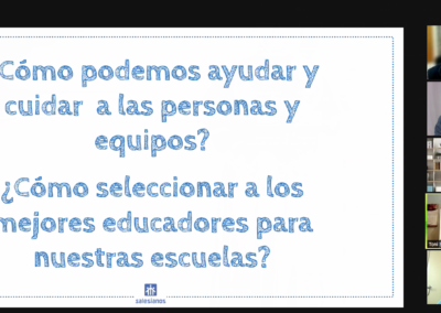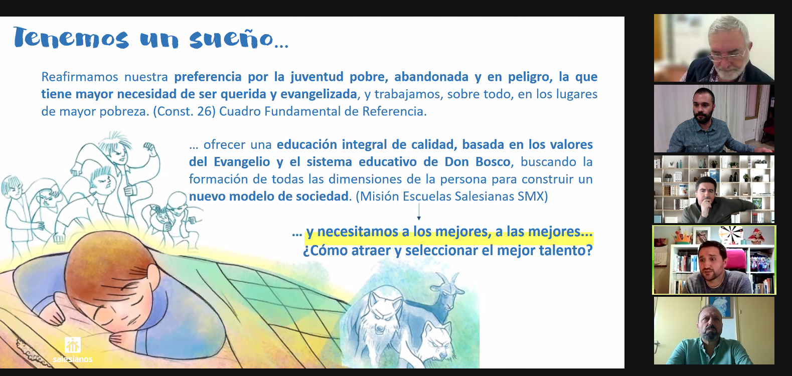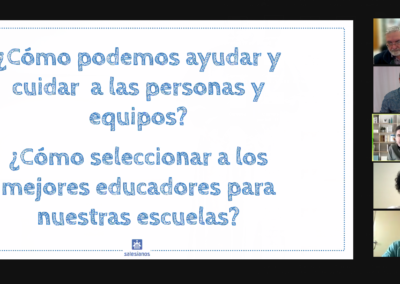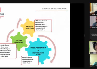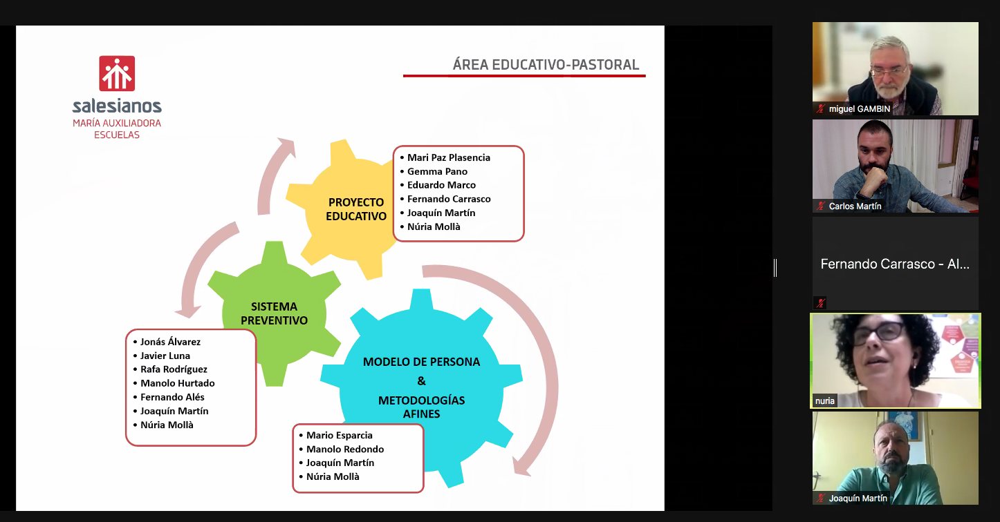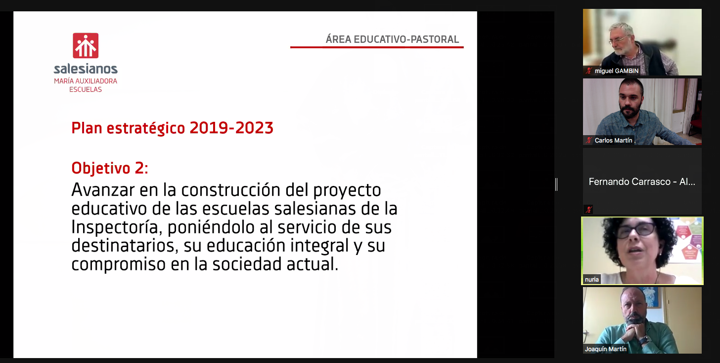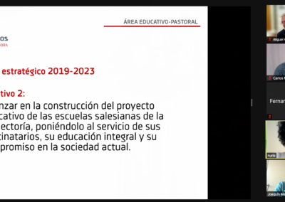 Durante la mañana del 29 de abril tuvo lugar la quinta edición del encuentro inspectorial de directores de escuelas salesianas de la Inspectoría María Auxiliadora. En esta ocasión la cita online sustituyó al tradicional encuentro en enclaves de años anteriores donde los participantes se encontraban en la Casa de Ejercicios San José de El Escorial. La distancia física no fue un inconveniente para más de un centenar de participantes de las diferentes escuelas salesianas de Andalucía, Aragón, Canarias, Cataluña, Comunidad Valenciana, Baleares, Extremadura y Región de Murcia que fueron recibidos por el mensaje de agradecimiento del inspector Ángel Asurmendi, el delegado de Pastoral Jordi Lleixà y el coordinador de Escuelas, Miguel Canino. «Gracias por vuestro esfuerzo durante todos estos meses para salir adelante con esperanza desde las escuelas salesianas», compartían como punto de partida de la sesión.